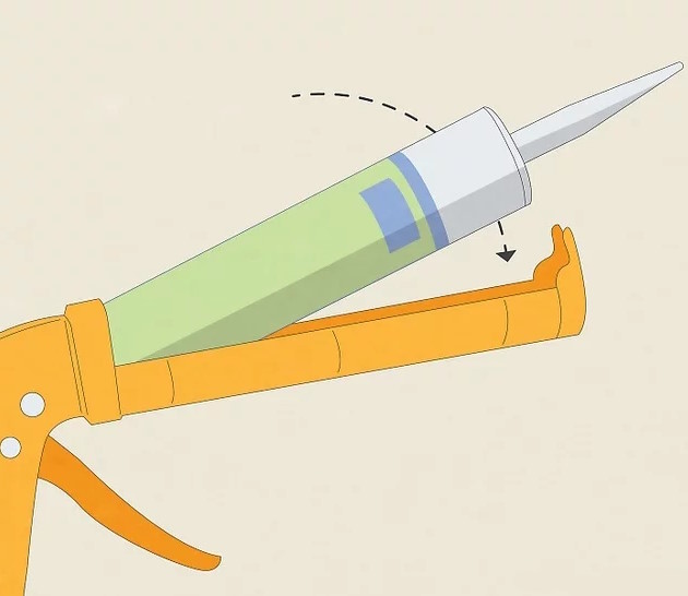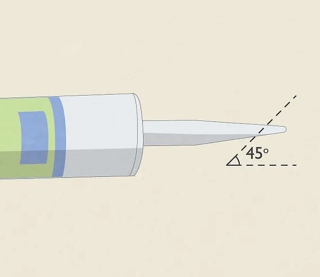 - Равномерно выдавливайте герметик вдоль шва, держа пистолет под углом 45°.