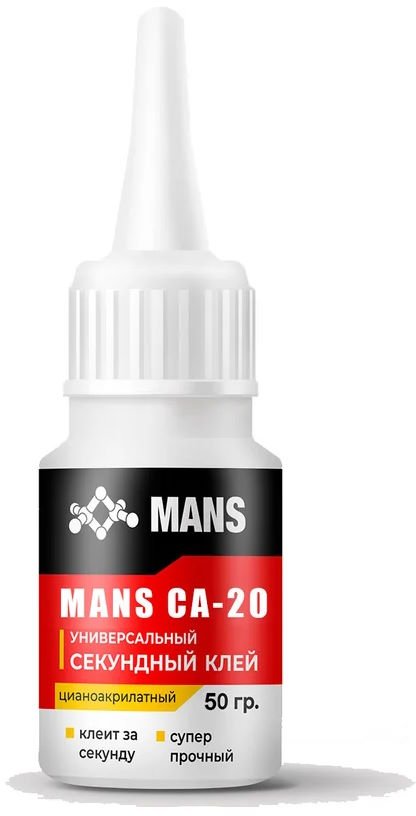 Клей MANS COSMOS CA-20 объемом 50 граммов представляет собой универсальное решение для склеивания различных материалов. Его основа - цианоакрилат, что обеспечивает мгновенное склеивание и надежное соединение. Прозрачный и бесцветный, он подходит для работы с пластиками, ПВХ, резиной, деревом, стеклом, керамикой и металлом, не оставляя видимых следов. Клей поставляется в удобной бутылке, что облегчает его использование.