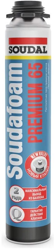 Soudal GUN PREMIUM 65 летняя — монтажная герметизирующая пистолетная пена с выходом до 65 л, с пониженным расширением и превосходной тепло- и звукоизоляцией. Обеспечивает максимальную эффективность и экономичность использования.